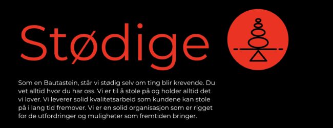 Vår grunnmur er sterk, og den gir oss trygghet til å vokse videre. Tilliten fra kundene er avgjørende, og vi skal alltid levere arbeid som varer.